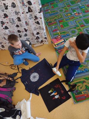 Pro děti, které o jarních prázdninách navštěvovaly školní družinu, byla v pondělí připravena dílnička malování triček a tašek.