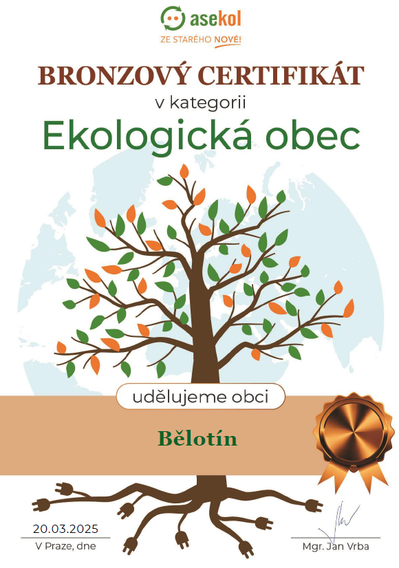 Bronzový certifikát Ekologická obec