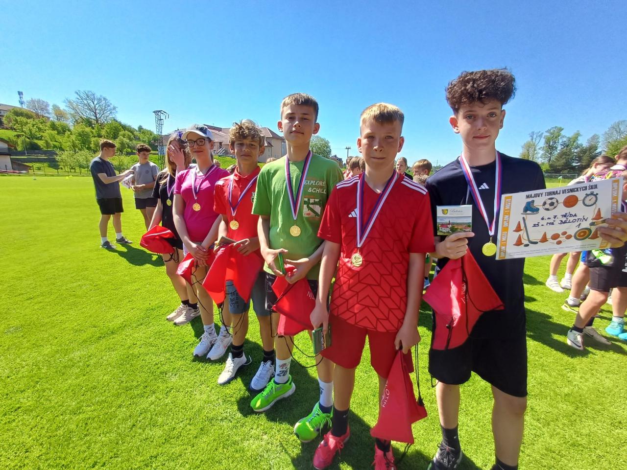 V pátek 2. května 2025 se na sokolském hřišti v Bělotíně uskutečnil Májový turnaj vesnických škol, který spojil čtyři školy z okolí a přinesl dopoledne plné pohybu, soutěží a přátelské atmosféry.
