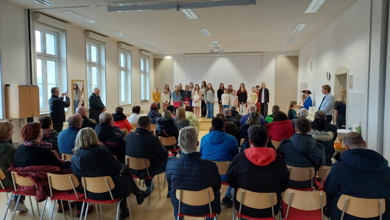 Na základní škole návštěvu přivítali v bělotínském kroji chlebem a solí a hosté si mohli prohlédnout vybavenost jednotlivých tříd a učeben společně s panem ředitelem Mgr. Tomášem Navrátilem. Součásti bylo i krátké vystoupení ZUŠ Hranice, kde se prezentovali žáci naší školy pod vedení Mgr. Kateřiny Navrátilové, a sboru při základní škole Adély Dudové.